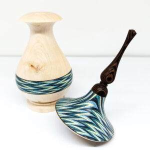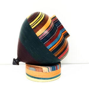 Le trottole di Energia Ludica – oggetti di equilibrio e forma – sono diventate uno spazio per la sperimentazione sui materiali. Realizzate in legno multistrato massiccio da Tabu, ogni pezzo mette in risalto come la struttura a strati e il colore possano trasformare forme semplici in raffinate espressioni di movimento e design.